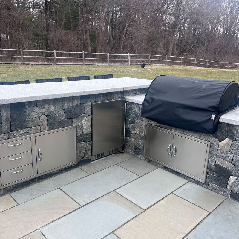 Make exciting memories with friends and family with a new outdoor kitchen or fireplace designed and installed by the experts at Ebenezer Landscape. We work alongside you every step of the way to ensure you’re totally satisfied with the look and layout of your new outdoor entertainment area. We work with high-quality materials that are manufactured and proven to handle Massachusetts’ unique weather, so you can enjoy a beautiful-looking hardscape that will last for years to come. Browse our previous projects for inspiration, and contact us to get started with your consultation today.